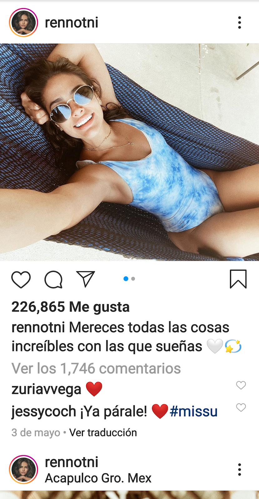 La Actriz Renata Notni ya rebasa los tres millones de seguidores en su cuenta de Instagram, y para complacerlos se dejó ver en sus recientes publicaciones muy sexy modelando bikinis